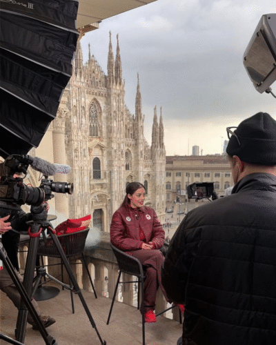 Madeline Schizas has also spent time with family out-and-about in Milan trying new restaurants and exploring thrift markets. She's been busy with media as well, giving interviews and sharing her insights from the Games with the stunning Duomo di Milano as her backdrop.