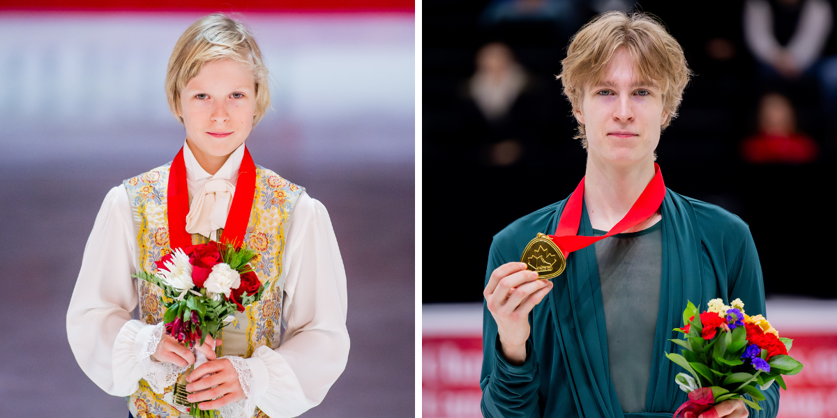 Stephen Gogolev : champion national junior 2017 (à gauche) et champion national senior 2026 (à droite).